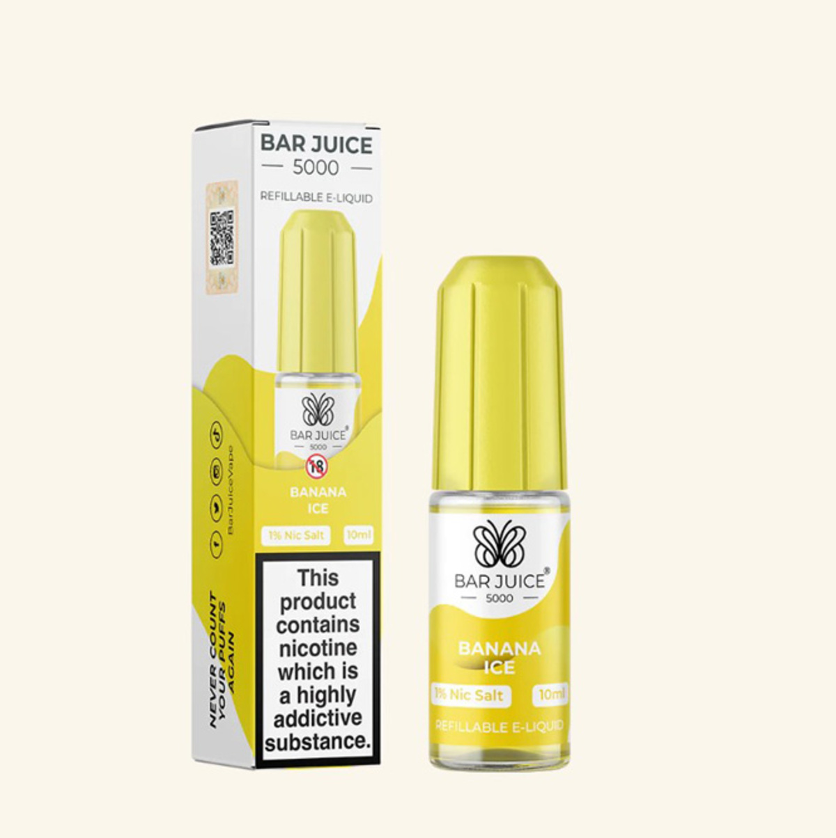 Load up your vape with Bar Juice Banana Ice 10mg Nic Salt 10ml E-Liquid, and you'll be whisked away to a frosty paradise where even monkeys bundle up in parkas and penguins enjoy banana daiquiris. It's a flavour fusion that's both surprising and downright delectable, and we're eager for you to give it a whirl!